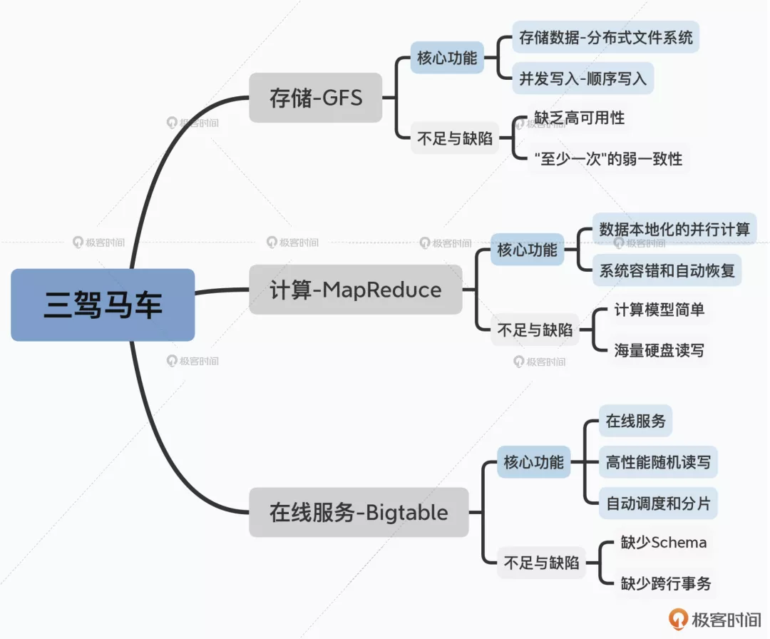 从最经典的 Google 三驾马车:GFS、MapReduce 和 Bigtable 这三篇「经典论文」开始讲起,帮你理解大数据系统面对的主要挑战,以及应对这些挑战的架构设计方法。