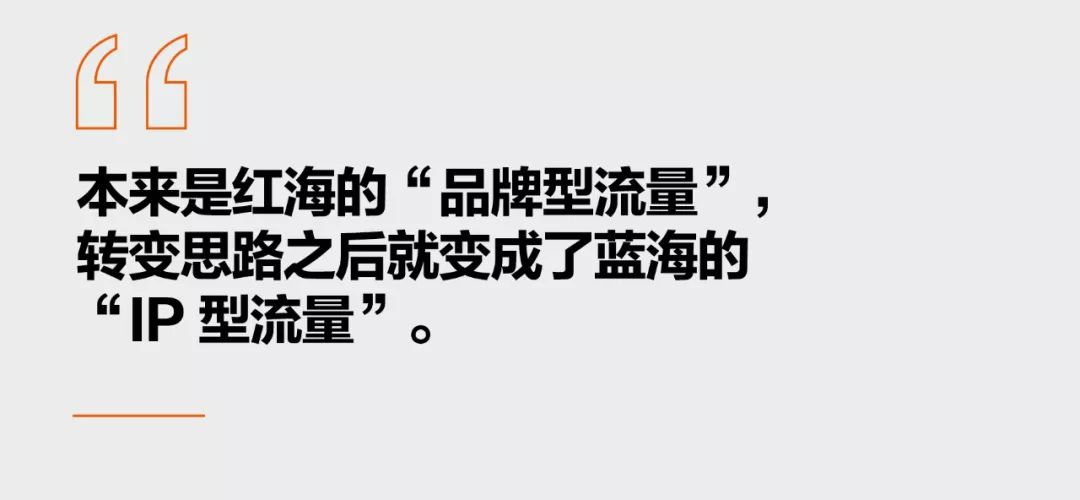 你看,本来是红海的“品牌型流量”,转变思路之后就变成了蓝海的“IP型流量”。