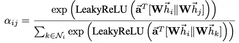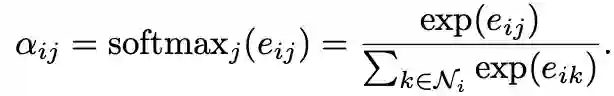 为了使不同节点之间的注意力系数易于比较,通过softmax进行归一化处理: