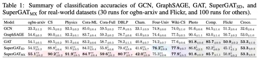 本文在多个真实数据集上进行了实验,结果表明SuperGAT获得了不错的效果。
