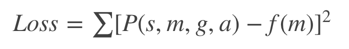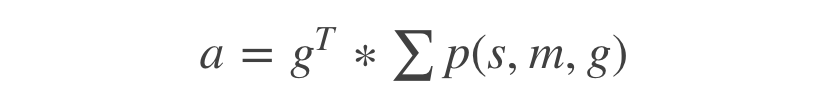 其中P(s,m,g,a)代表对于选定的行动网络的输出结果。