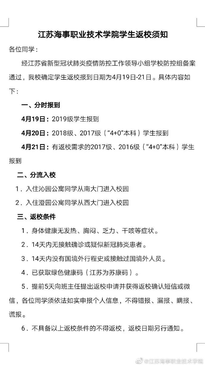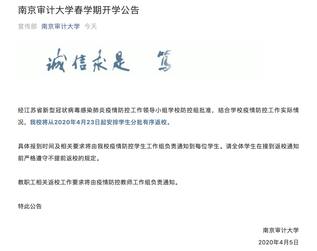 江苏高校陆续发布开学通知