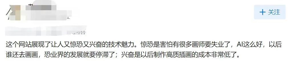 正如一位知乎网友所评论的:「这个网站让人既惊恐又兴奋。惊恐是害怕有很多画师要失业了,绘画界的发展就要停滞了;兴奋是以后制作高质插画的成本会降低。」