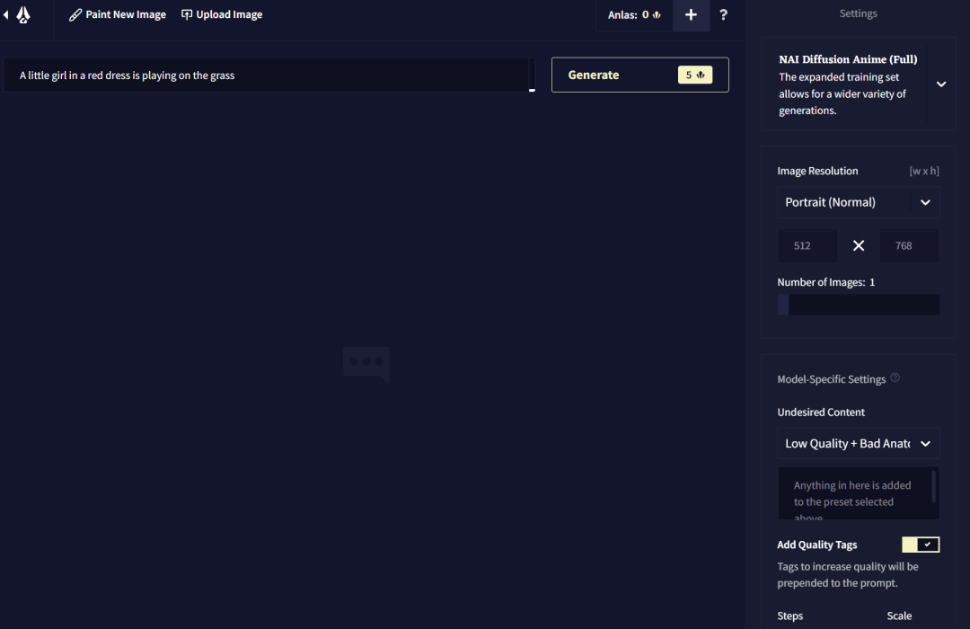 NovelAI 不但能续写故事,还能生成图片,主要包括三种:输入文字生成二次元图像;草图生成二次元图像;上传图片生成二次元图。