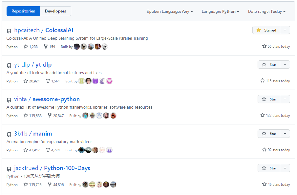 Colossal-AI一经开源便受到广泛关注,连续多日登顶GitHub热榜Python方向世界第一,与众多已有数万star的明星开源项目一起受到海内外关注!