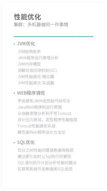 总而言之,这个阶段,你需要做的是深入了解Java底层和Java类库,也就是JVM和JDK的相关内容。