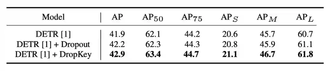第一,在注意力层应该对什么信息执行 Drop 操作?与直接 Drop 注意力权重不同,该方法在计算注意力矩阵之前执行 Drop 操作,并将 Key 作为基础 Drop 单元。该方法在理论上验证了正则化器 DropKey 可以对高注意力区域进行惩罚并将注意力权值分配到其它感兴趣的区域,从而增强模型对全局信息的捕获能力。