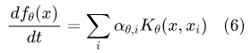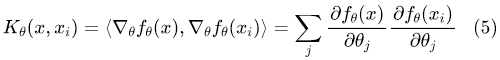 ,在神经网络中它还有一个非常酷的名字,叫做“Neural Tangent Kernel”,我们将其记为: