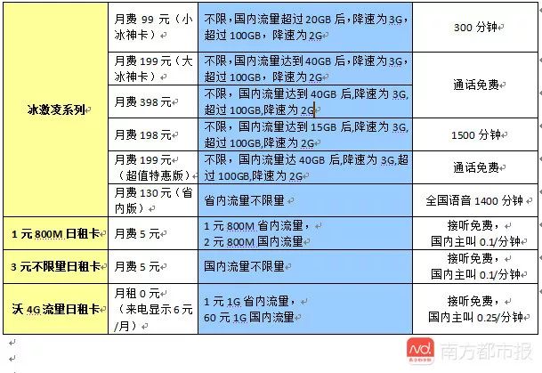 南都记者近日调查还发现,不少全国无限流量套餐月费价格已经跌破百元,如电信的99元不限流量套餐、联通小冰神、移动88元不限量4G飞享套餐等,均已降至100元以下。