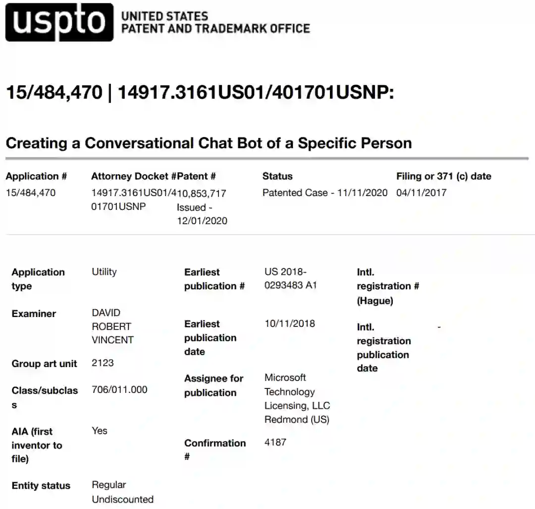 不知道你有没有注意到,不论是夏语冰,还是陈水若,他们既是虚拟的,同时也是三次元的。这是怎么做到的呢?只有四个字:小冰框架!小冰框架从开始到现在,已经迭代到了第9代。首先,在内容的生成方面,小冰团队在2021年9月22日的年度发布会上,曾披露了小冰框架工业化的短视频内容封装管线和三次元虚拟人产品线。据小冰团队介绍道,自2017年首倡并积极推进人工智能创造(内容生成)以来,小冰先后推出了诗歌等文本生成,绘画及视觉设计等视觉生成,及人工智能音乐生成的多项核心技术与产品,利用人工智能高稳定性及大规模并发的优势,推进端到端的内容生成产能。人工智能内容生成也叫做人工智能创造。它仅是小冰框架中的一个部分。如果把它展开来讲的话,人工智能内容生成其实是一个非常复杂的系统,包含了创作、演绎、内容二次封装这三个主要的部分。而且在这三个主要部分中都包含了非常多的模型、工程、算法等等。在小冰框架中,先去训练一些具有创作能力的创作主体,其中就包括文本、视觉、声音大量基础的模型。然后把创作的这些作品交付给演绎主体进行演绎,然后再对演绎的作品进行内容的二次封装。此外,短视频内容封装管线包括「二次元」短视频和「三次元」短视频2种形式,而且大大降低了短视频生产成本。令人震撼的是,小冰团队将「二次元」短视频从文本生成到短视频生成全链路、全管线全部由人工智能自取,中间不需要任何人工参与。「三次元」短视频实现了从生物学特征生成到短视频生成的整个环节,也就是说可以从无到有创造出世界上并不存在的Up主视频,看起来像真人一样。那么,重点来了,这些生物学特征又是如何生成的呢?目前通常的虚拟人视频技术栈是这样的:用3D建模技术做一个虚拟人的身体,和头部绑定。然后用动作捕捉技术去驱动,由真人像操纵木偶一样操纵这个身体,不管是动作还是声音,都是真人演绎的。或者,用3D建模技术做一个虚拟人的身体,和头部绑定,然后用动作库匹配的方式去驱动它动起来,而这样操作的最大弊端就是动作极其不自然——「一眼假」。相对来说最自然的就是找一个真人进行拍摄,然后换头。但成本极其昂贵,堪称「每秒几克黄金」。而有了小冰框架的加持,效果就不一样了:1. 通过小冰神经网络渲染技术,生成完全不存在的面部特征(AI创造面容),完全避免了对真实人脸的滥用。2. 通过小冰神经网络渲染技术,将虚拟人的面部特征置换到视频模板中,并进行表情控制等一系列控制(AI置换面容)。听起来有点像是AI换脸,但技术上的复杂度区别很大,而且自然度也无法做到这个程度。3. 通过小冰数字孪生技术,根据实际视频的内容,可以调整视频模板。例如动作的变化、表情和表达内容的变化等。4. 通过小冰超级自然语音技术,生成虚拟人的高质量演唱声线(AI创造声音),并根据需要生成对应的歌声。这样,背后不再需要任何配音演员。5. 通过以上过程,使面容、表情、声音全部统一在一起,形成无法与真人区分的内容。 现在,三次元虚拟人可谓是大势所趋,不仅是各种形象如雨后春笋一般产生,而且吸粉无数。去年年底,「柳夜熙是谁?」在抖音疯狂刷屏,还引发了各种跟风模仿。柳夜熙仅靠着2条短视频,就获得了426万点赞,涨粉200多万,并在一周后粉丝数超过430万。然而,几乎所有的角色逃不开的「悖论」就是,是想要看起来自然,还是想控制成本。 例外倒也有,不错,就是那个见于未萌的小冰。 2017年,小冰团队就提交了一个名为《Creating a Conversational Chatbot of a Specific Person》的专利。 历经3年,专利于2020年11月11日正式获批。专利提出了一个创建特定人物的对话式聊天机器人的系统和方法。比如,这里有个路人甲,那么首先你需要访问ta的社会数据(例如,图像、语音数据、社交媒体、电子信息、书面信函等)。然后建立以路人甲的个性为主题的特殊索引,并用这个索引来训练用于聊天机器人,使机器人能够以路人甲的个性与其他人进行交谈。此外,还可以使用路人甲的图像、深度信息和视频数据生成特定人的二维或三维模型。说到这里,是不是有股浓浓的「黑镜」风。