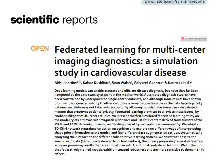 便捷下载,请关注专知人工智能公众号(点击上方蓝色专知关注) 后台回复“FLMID” 就可以获取《【Scientific Reports】《多中心影像诊断的联邦学习:心血管疾病的模拟研究》》专知下载链接