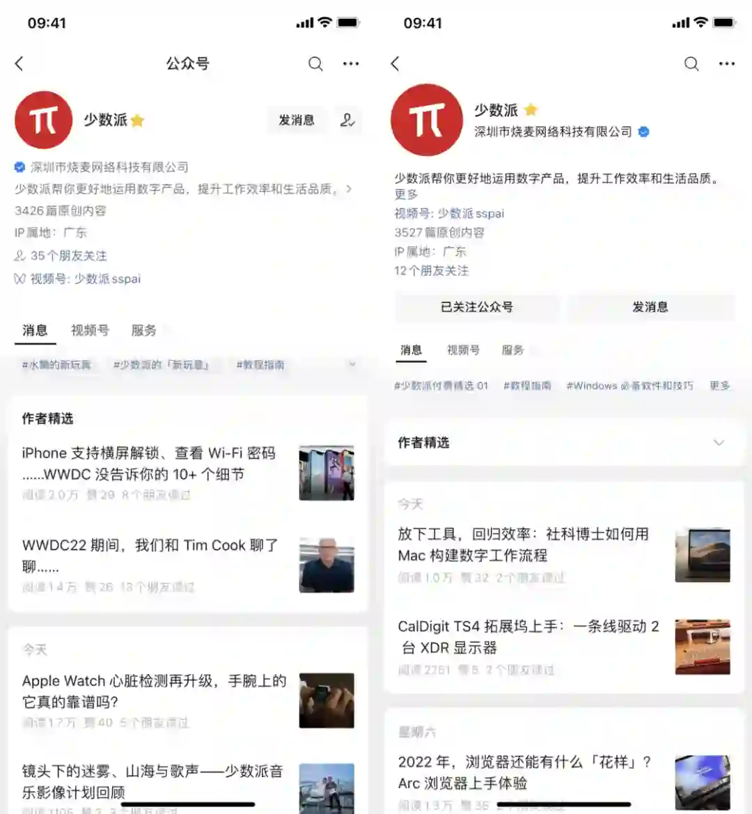 公众号详情页 UI 调整,将「发消息」与「关注」按钮放大;