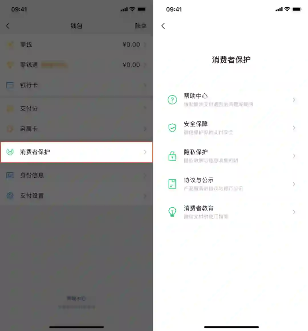 「消费者保护」是随着微信 8.0.27 一同更新的功能,即使是旧版本微信也能使用,你可以在「我 > 服务 > 钱包」里找到它。