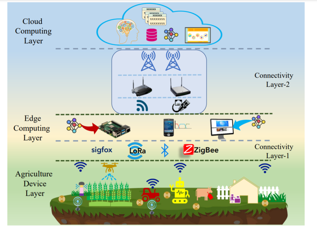 解决方法: 在云平台上发现问题后,立即提出解决方法。这一阶段可以在云中完成,也可以在边缘完成。例如,如果部分农田是干旱的,这个阶段表明灌溉系统的阀门需要释放什么价值和多长时间来最佳地灌溉干旱的土地。