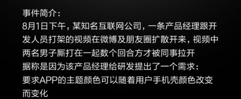 2018年8月,某产品经理要求“根据用户手机壳来改变APP主题颜色”,跟程序员厮打起来……