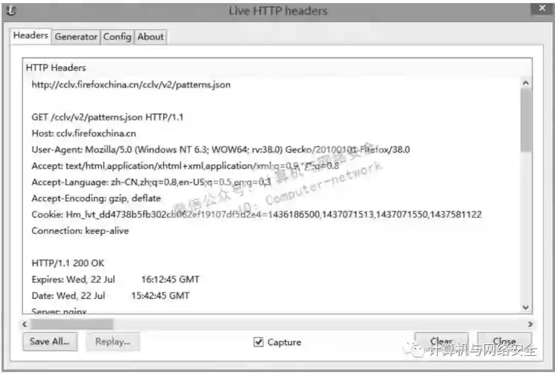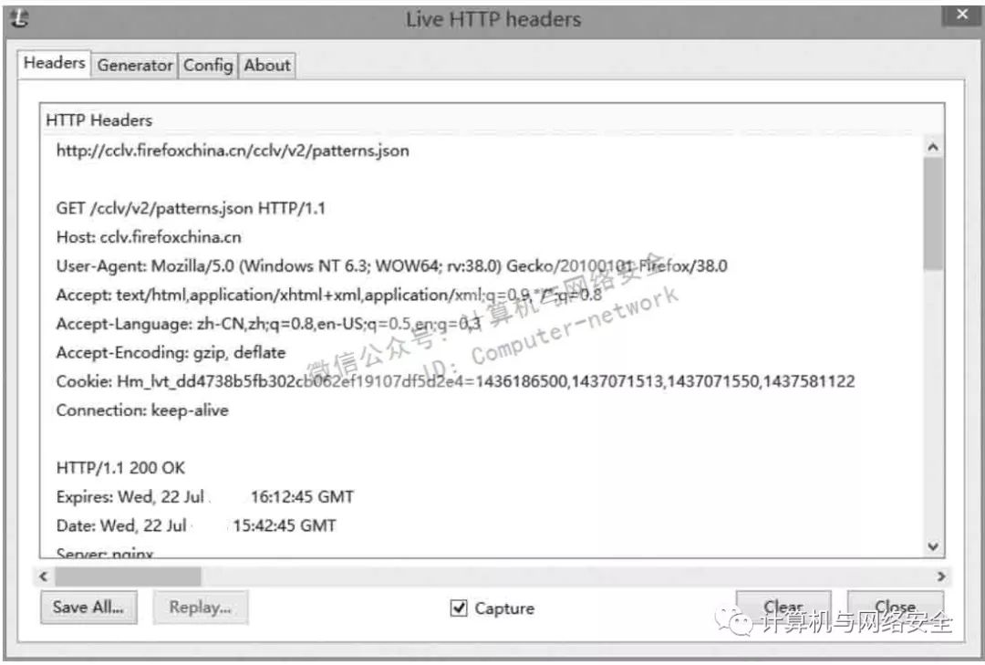 (2)Live HTTP headers。该工具用来对数据包进行捕获,如图7所示。