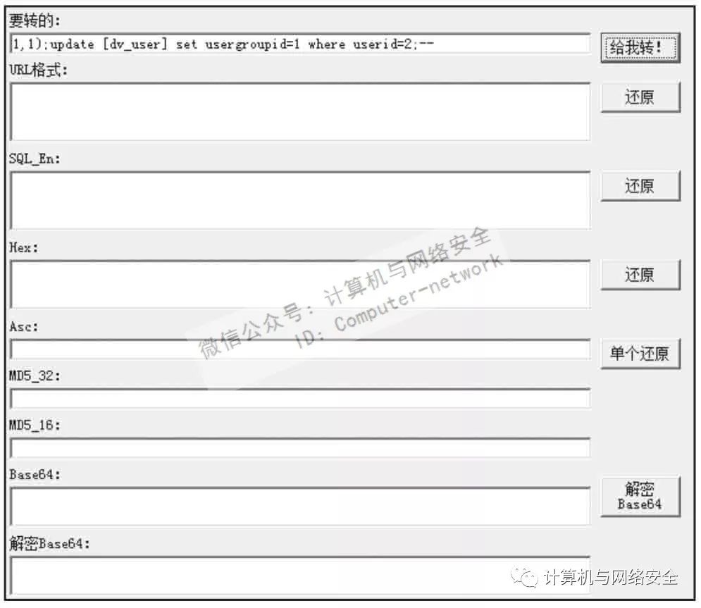 字符转换工具很多,在这里推荐小葵多功能转换工具,支持将普通编码转换为URL/SQL_En/Hex/Asc/MD5_32/MD5_16/Base64等格式的编码,非常实用,如图4所示。