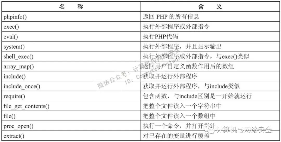 表2 常见高危函数