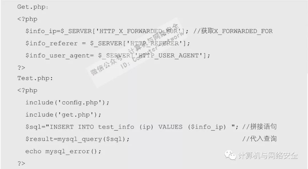 这里给出一段X-Forwarded-For注入的问题代码。