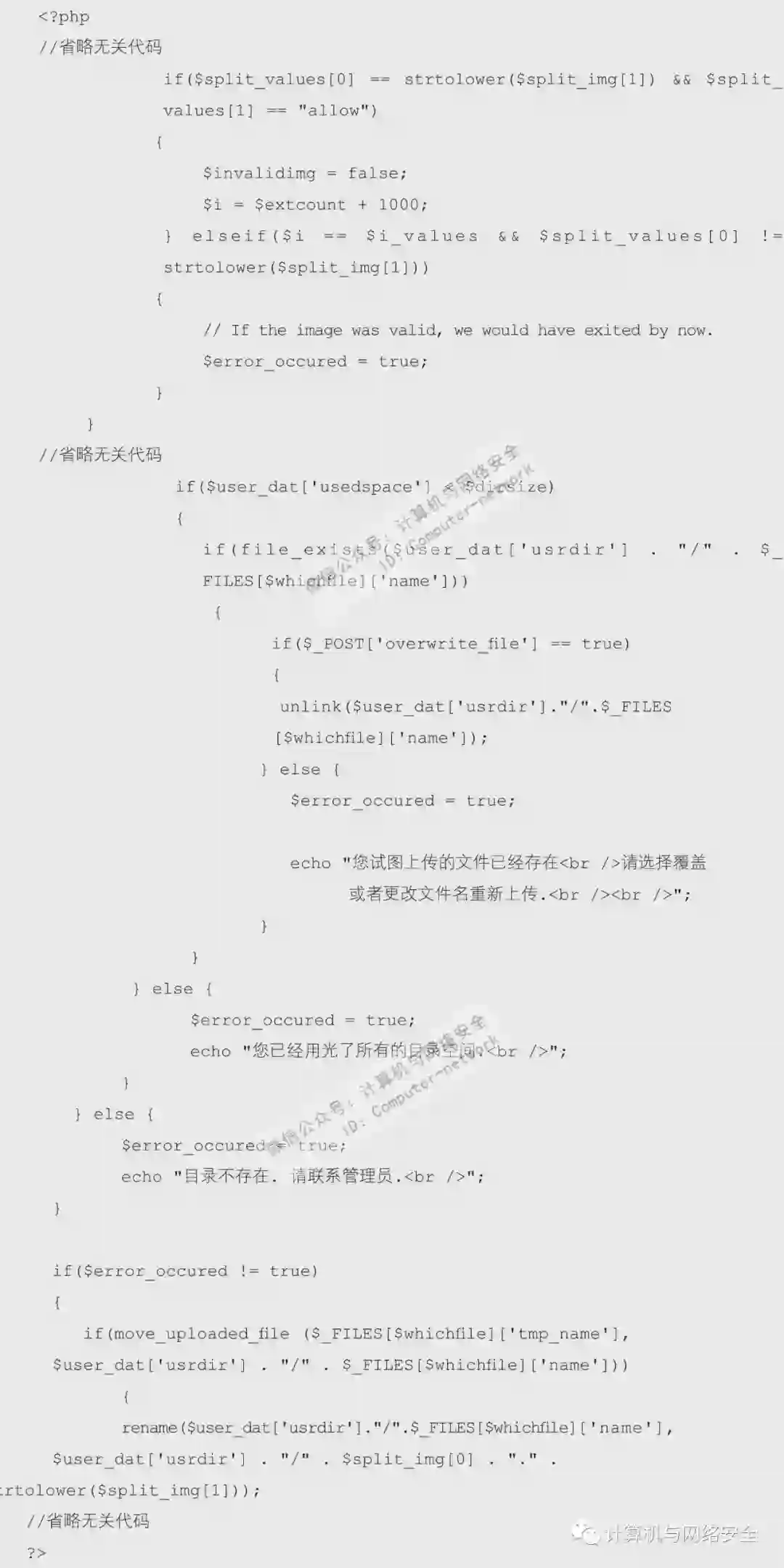 这里会将之前上传的××.jpg.php改名为××.jpg。但根据rename函数特性,当二次上传同名文件时,例如××.jpg.php,紧接着会进入流程,尝试被改名为××.jpg,但因为××.jpg已经存在了,所以成功上传了××.jpg.php。