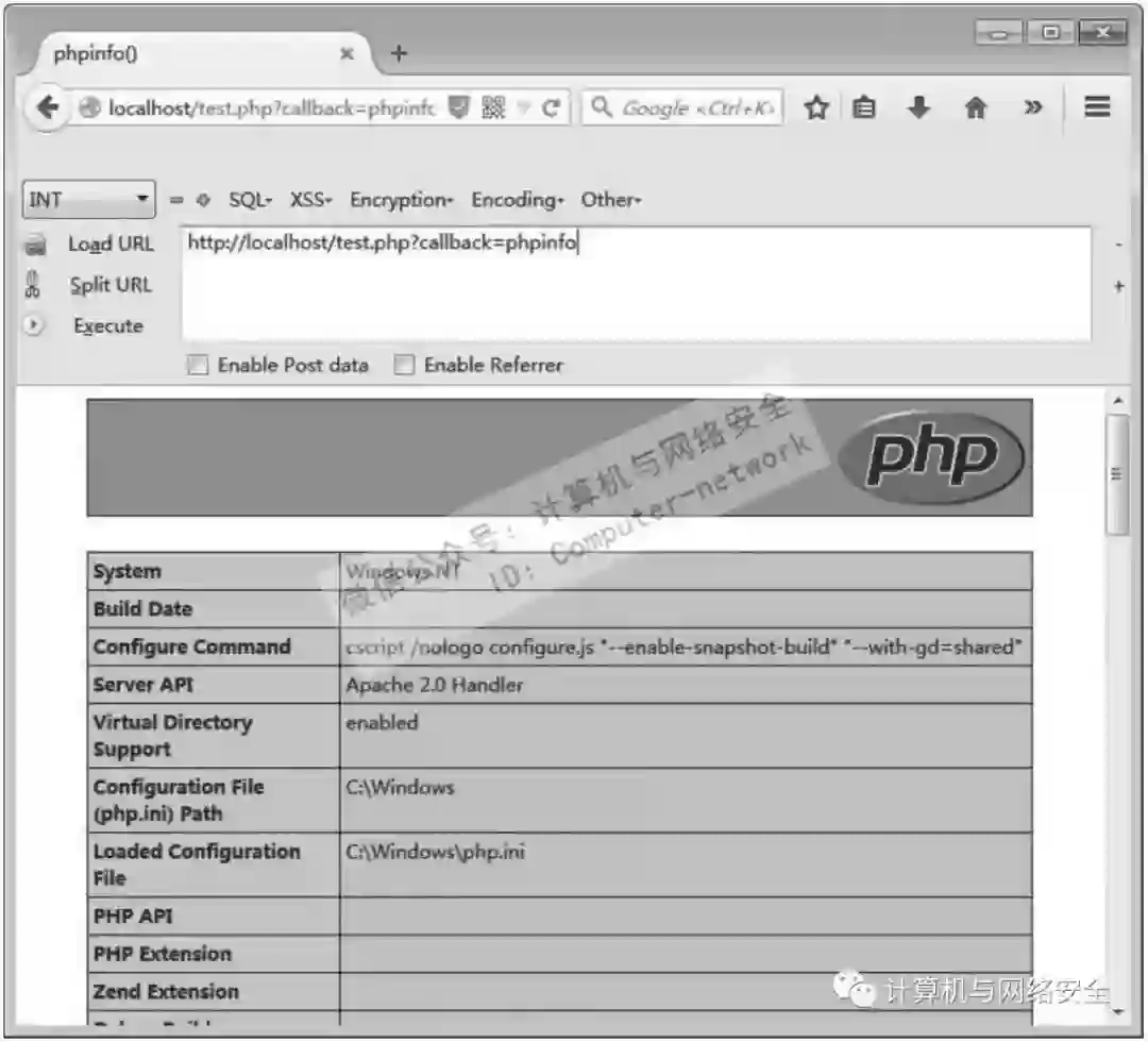 令上述代码中的参数callback为phpinfo,结果如图20所示。