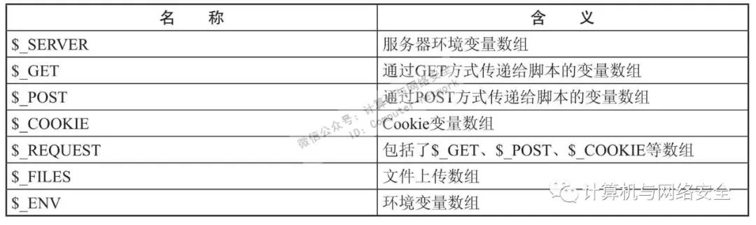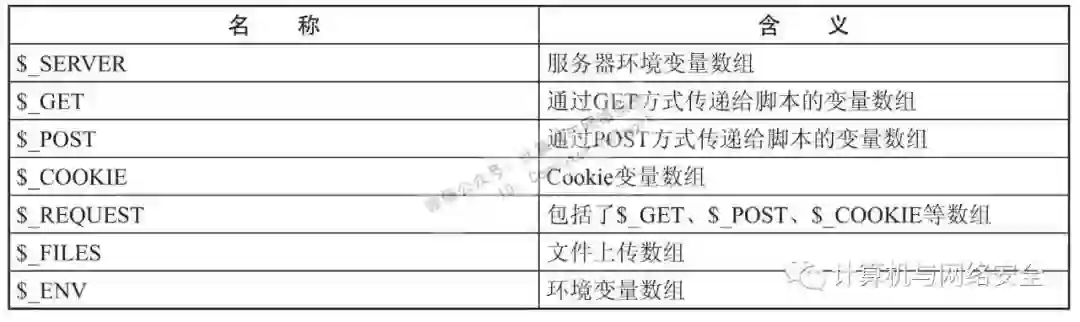 在审计中,应特别留意用户可控的参数。而对于可控参数的查找,可以检索一些传参数组,使审计更加高效,常见的传参数组如表1。