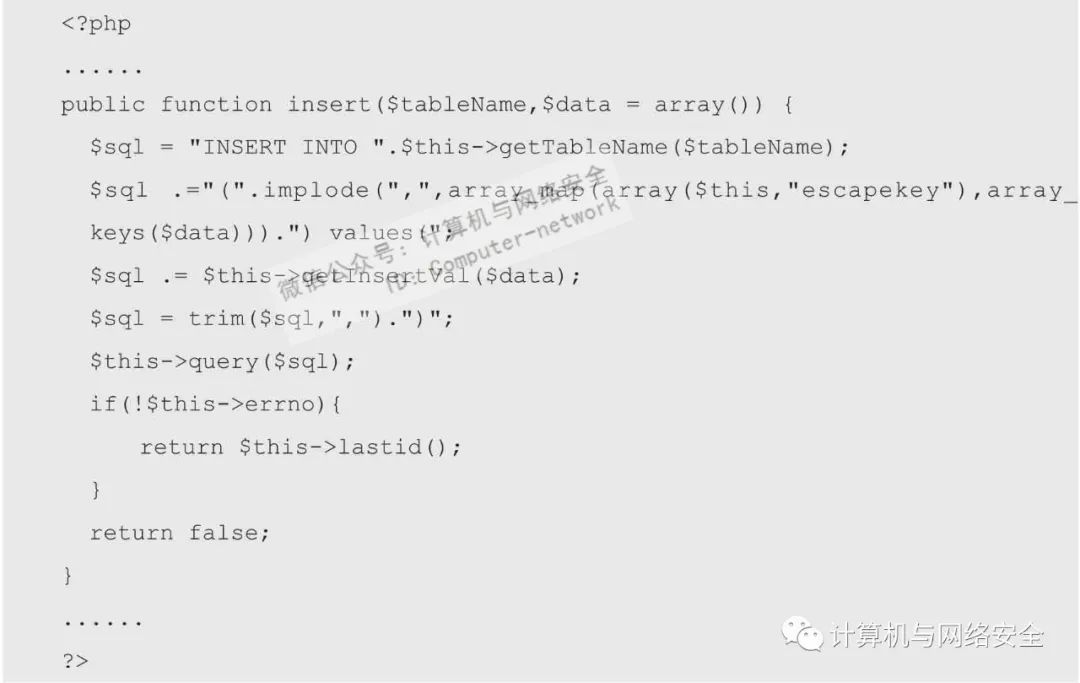 getInsertVal中还嵌套了几个函数,不过并没有做什么过滤,故此省略。从下面的代码中来找找出库的地方。