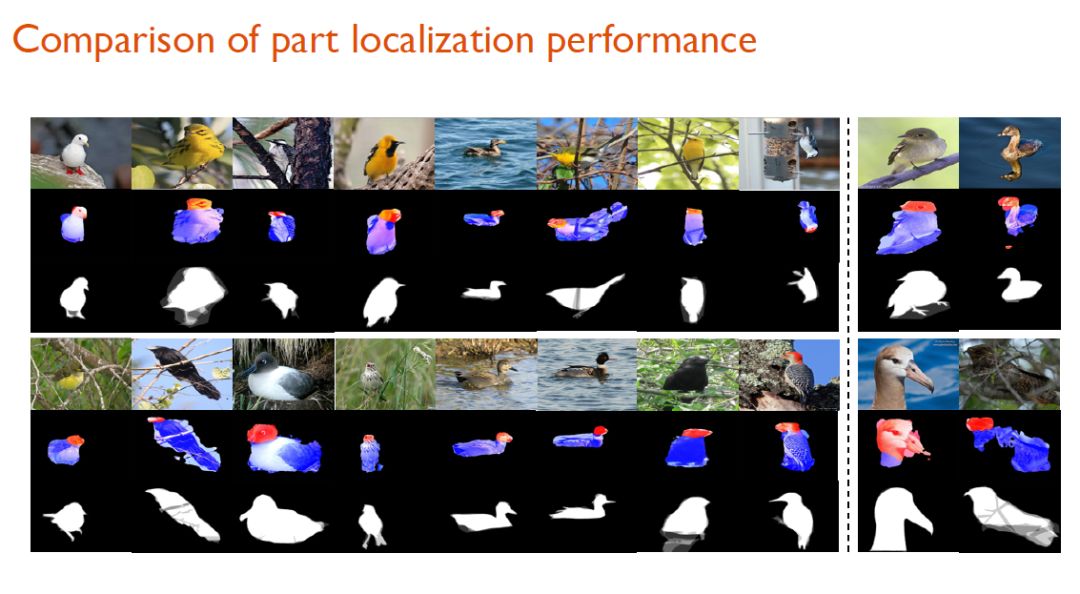 以下是一些定性比较结果,通过将算法无监督定位的结果与ground truth相比,可以发现,二者基本重合,模型的效果比较理想。
