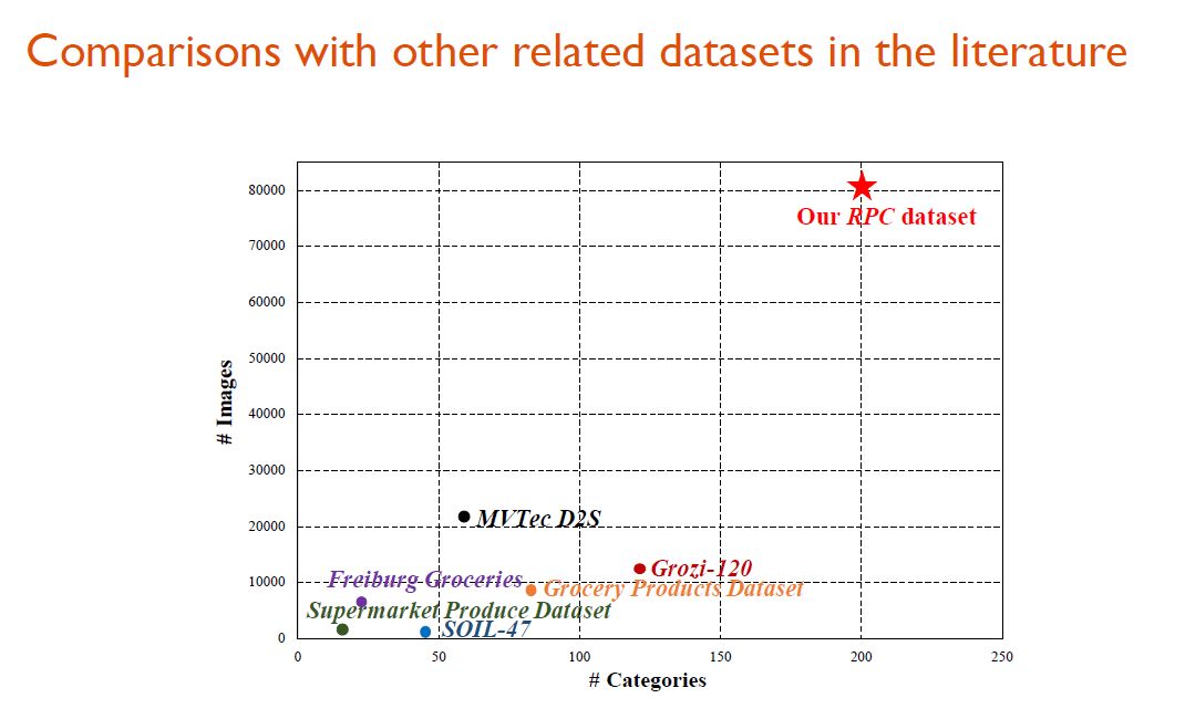 需要说明的是,这里的RPC数据集在商品种类和图像数量上都远超现有的同类数据集。