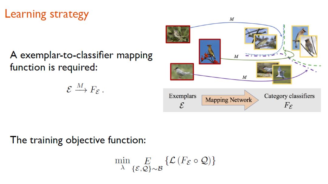就具体的学习策略而言,研究人员希望系统直接根据输入图像学习到一个映射,映射的对象就是这个输入图像所属类别的分类器(classifier)。当系统学习到classifier以后,便可以对evalutation data进行分类。
