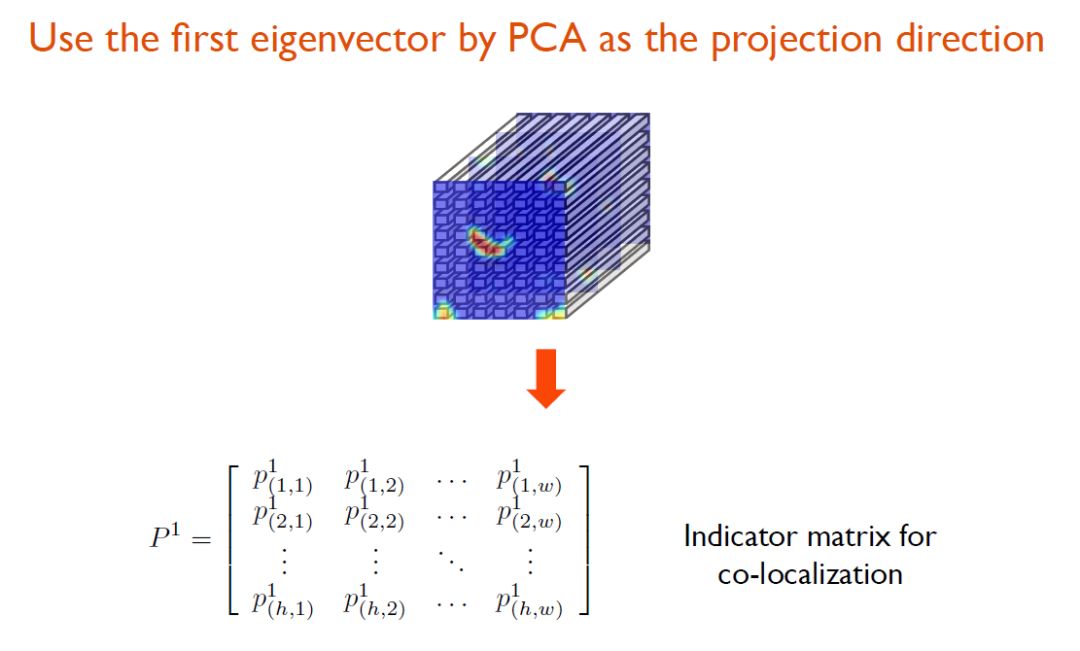 对于这些tensors,研究人员需要衡量的是其中每一个描述子的相关程度。其实我们需要的仅仅是一个映射函数:将深度描述子从自身空间映射到一个新空间。在新空间中可方便衡量深度描述子的相关程度。如果结果呈现正相关,那表示这些描述子具有跨图像的物体描述效果,如果负相关,那么说明这些描述子只和某一张图像相关,不具备通用的描述效果。显然,在DDT的方法中,threshold天然为一个定值:0。