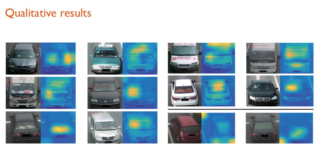 下图展示了车辆细粒度识别的部分可视化效果。可以看到,系统准确抓住了车辆上细微的区分标识(装饰物、年检标识等)。