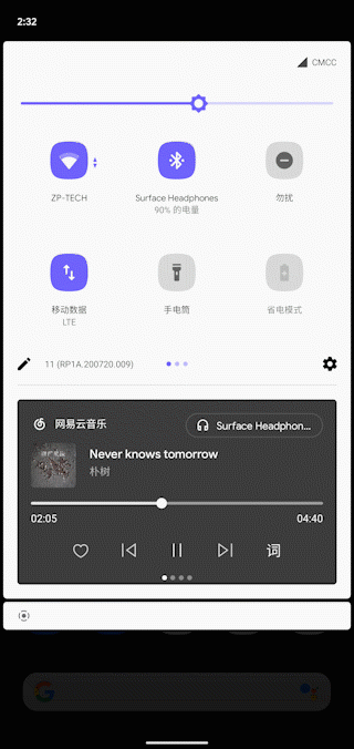 在Android 11中,谷歌再次对媒体控制(也就是我们常说的音乐通知栏)进行了大刀阔斧的更新。新版本的媒体控制栏被内嵌到了通知栏里,带来了更为一体化的观感。