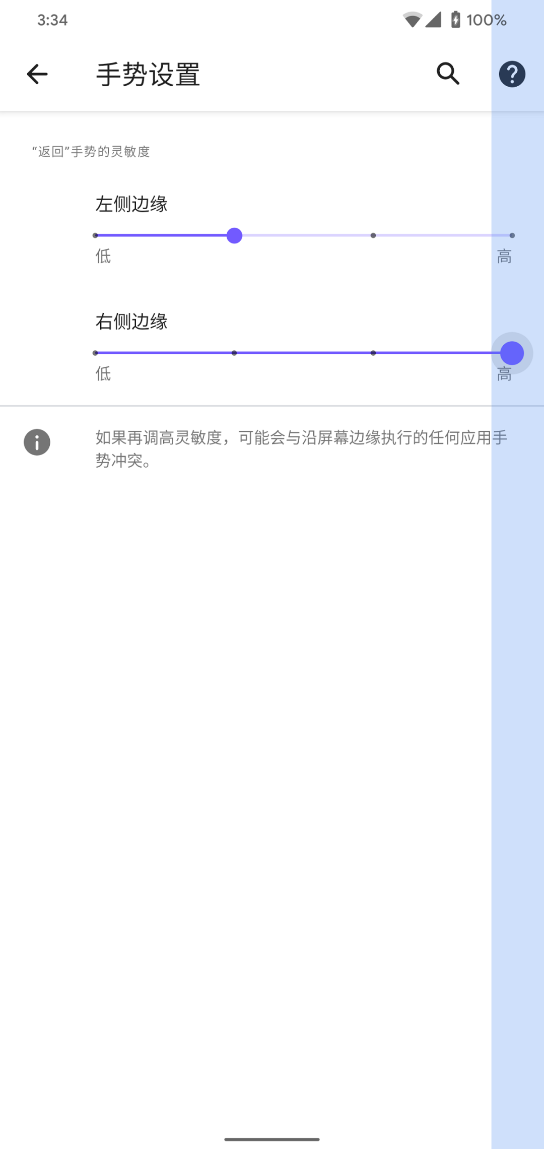 手势导航现已支持两侧灵敏度调整