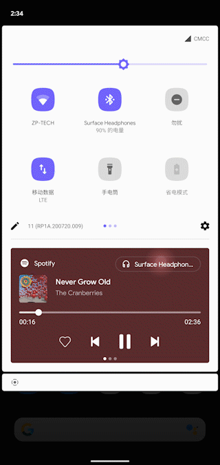 尽管小编很喜欢这一新设计,但遗憾的是,此前版本种媒体控制的渐变色通知条在这里被砍掉了。这个在Android 8.0开始引入的设计曾让小编欲罢不能,现在也只能道声再见了。