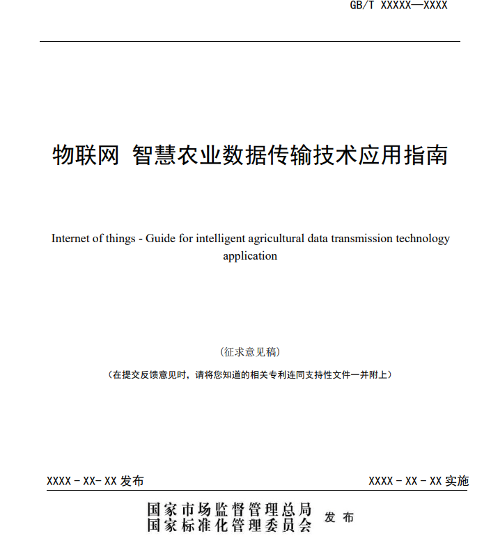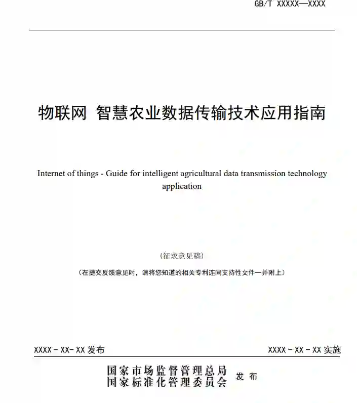 本文件给出了智慧农业数据传输架构、传输方式和适用协议。本文件适用于智慧农业数据传输的设计、研发、选型和部署。