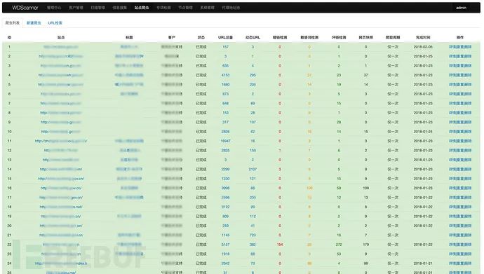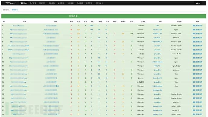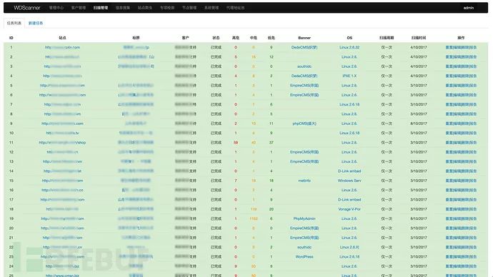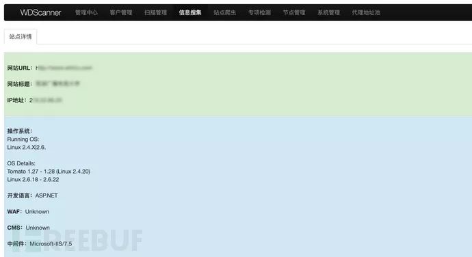 在添加新任务后,后台可主动识别目标 banner 和操作系统信息、端口开放、敏感文件扫描等。