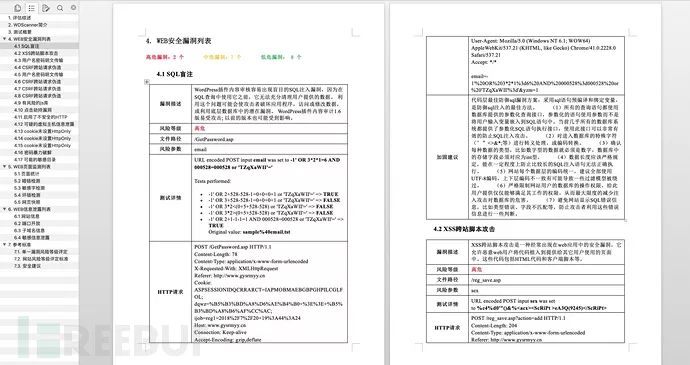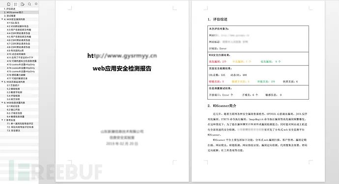 报告输出是专业扫描器不可缺少的部分,看起来功能不是很起眼,但的确花了我们很多时间和精力来实现这个功能。现在还只是实现了一个常规报告模板,而且在漏洞分类里还有些重复,后续还会慢慢完善。
