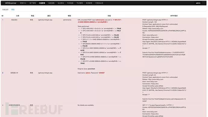 扫描核心库使用了 secscanner+w3af+awvs 三款工具(secscanner 是在建的另一套 web 扫描器,w3af 是最好的开源扫描器),使用较多的扫描工具可能导致扫描速度有所降低,但误报率也会大大降低,扫描时也可选择最实用的扫描策略以节省时间。