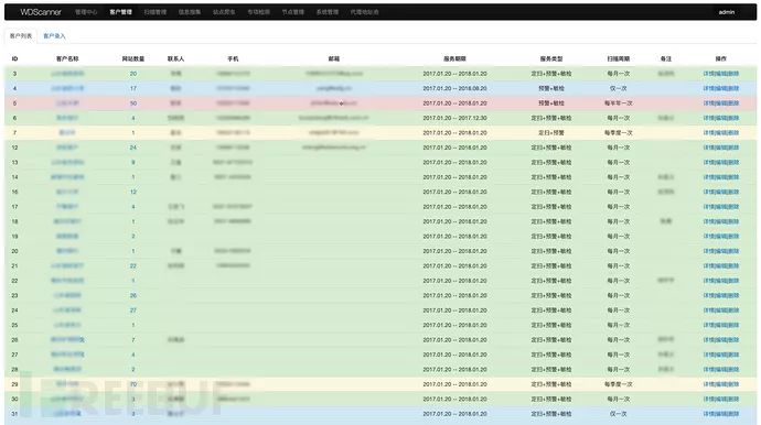 客户管理:添加客户、添加客户持有系统、设置客户持有系统的扫描策略、周期性扫描等