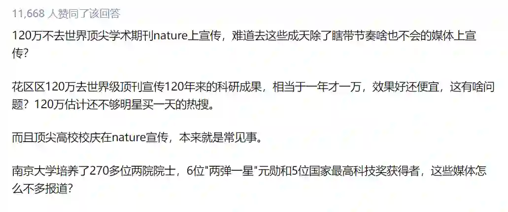 随后发文《《自然》杂志回应南京大学花120万发特刊,国内多家“双一流”高校均有此“操作”》。