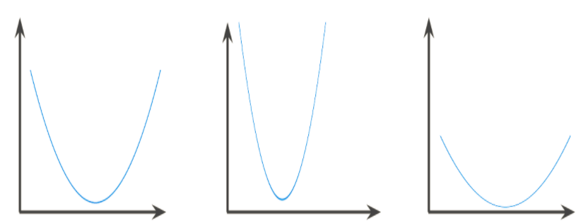 严格凸函数只有一个局部最低点,该点也是全局最低点。经典的 U 形函数都是严格凸函数。不过,有些凸函数(例如直线)则不是这样。