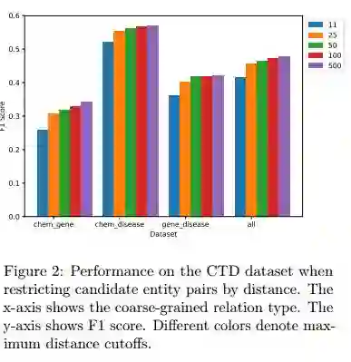 摘要:Most work in relation extraction forms a prediction by looking at a short span of text within a single sentence containing a single entity pair mention. This approach often does not consider interactions across mentions, requires redundant computation for each mention pair, and ignores relationships expressed across sentence boundaries. These problems are exacerbated by the document- (rather than sentence-) level annotation common in biological text. In response, we propose a model which simultaneously predicts relationships between all mention pairs in a document. We form pairwise predictions over entire paper abstracts using an efficient self-attention encoder. All-pairs mention scores allow us to perform multi-instance learning by aggregating over mentions to form entity pair representations. We further adapt to settings without mention-level annotation by jointly training to predict named entities and adding a corpus of weakly labeled data. In experiments on two Biocreative benchmark datasets, we achieve state of the art performance on the Biocreative V Chemical Disease Relation dataset for models without external KB resources. We also introduce a new dataset an order of magnitude larger than existing human-annotated biological information extraction datasets and more accurate than distantly supervised alternatives.