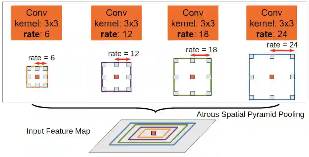 另外,使用空洞卷积也可以获得多尺度的特征 [5],空洞卷积是通过使用具有间隔的卷积核在特征图上进行卷积从而避免对原特征图进行下采样的步骤。