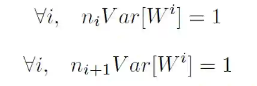 Xavier 的提出者指出,第 i 层的参数方差从正向和反向传播的角度考虑,应分别满足如下式子。其中的 n_i 和 n_(i+1) 分别是该层输入的元素个数以及输出的元素个数。