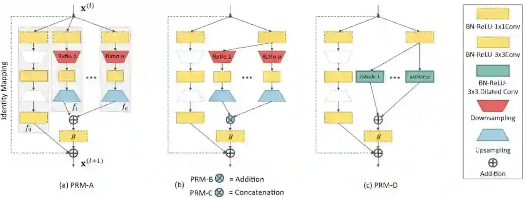 PRM-B 则是将 PRM-A 中不同分辨率的分支开始的 1*1 卷积进行参数共享,从而减少参数数量。