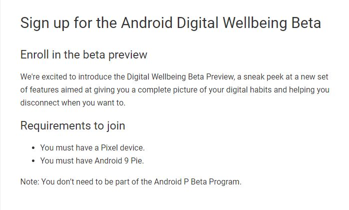此前,如果你的 Pixel 手机已经升级至 Android 9.0 Pie 正式版,可前往 Beta 测试页面,测试链接会在一个工作日内发送至你填写的邮箱。点击即可加入测试并跳转至 Play 应用商店,通过 Play 应用商店升级相关系统组件后,Digital Wellbeing 选项就出现在了系统设置中。