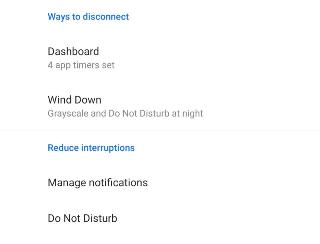 Ways to disconnect 可以说是 Digital Wellbeing 的主推特性,它的两大功能具体如何使用,我们不妨接着往下看。